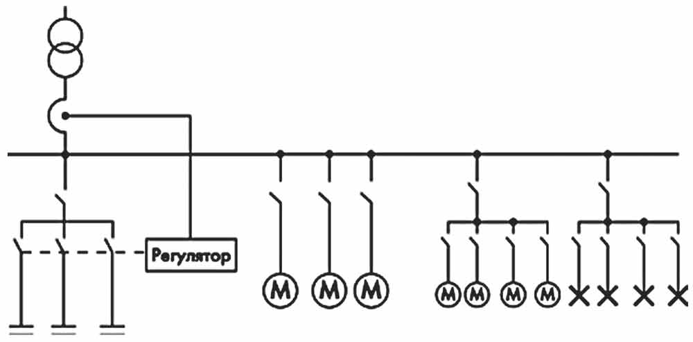 In those sections of the power system where reactive loads are present in the network almost constantly, it is possible to install unregulated, continuously operating capacitor banks, which are significantly less expensive than equipment with automatic power regulation.