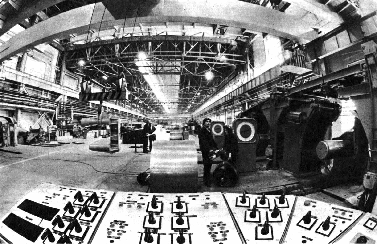 Прокатный цех Лысьвенского металлургического завода, из продукции которого — хромированной лакированой жести — изготавливают тару для мясных, молочных и овощных консервов.